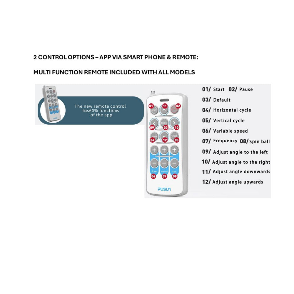 As the most formidable member of the PUSUN tennis ball machine family, the PT9001 stands as a testament to professional-grade performance. It boasts the most comprehensive set of features, the highest number of programmable landing points, and the richest variety of ball delivery modes, setting a new standard for tennis training excellence.